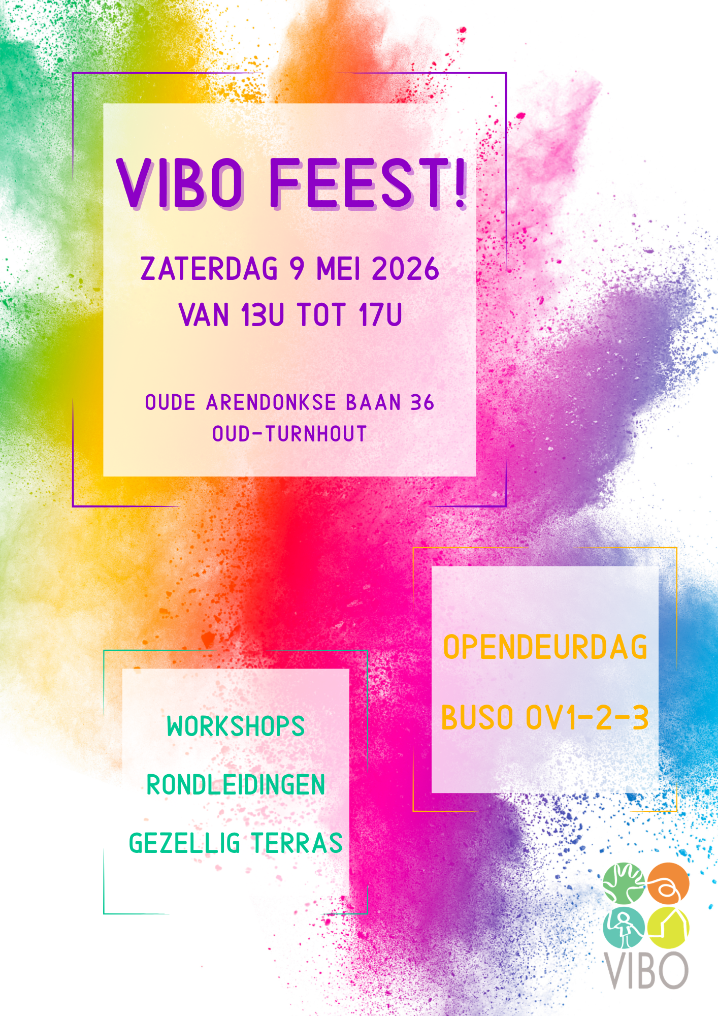 Zaterdag 9 mei 2026 van 13u tot 17u worden op onze vestiging in Oud-Turnhout de schoolpoorten open gegooid voor VIBO Feest!